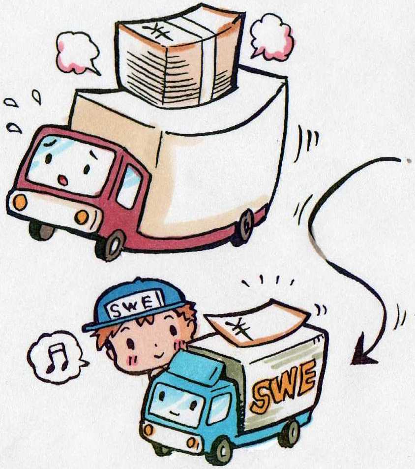 サポートする配送システムです。▼荷が増えて増車しないといけないが、当面